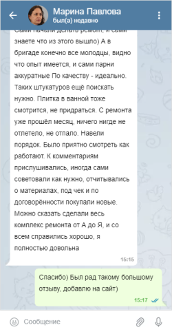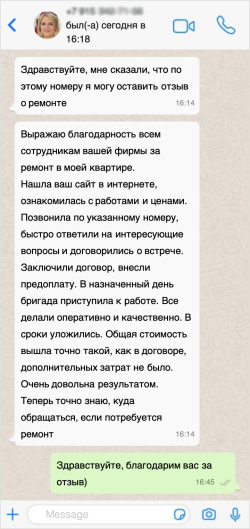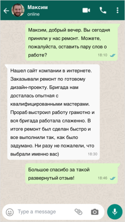 Фирма занимается ремонтом офисов, коттеджей, квартир, дач. Осуществляем любые виды ремонтных работ в помещении. Многие клиенты, которые обращались в нашу фирму, оставили положительные отзывы, они размещены на сайте. У нас представлены фотографии интерьеров для ознакомления заказчиков. Мастера сделали больше 1000 заказов качественно и в срок.